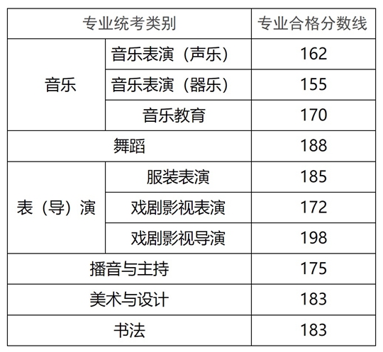 統(tǒng)考合格分?jǐn)?shù)線不分本?疲忌鄳(yīng)藝術(shù)類別自治區(qū)統(tǒng)考成績達(dá)到上述合格分?jǐn)?shù)線即為相應(yīng)藝術(shù)類別自治區(qū)統(tǒng)考合格生源。相應(yīng)藝術(shù)類別自治區(qū)統(tǒng)考成績合格的考生,方可參加具有普通高校招生藝術(shù)類專業(yè)?假Y格高校所舉辦的相應(yīng)類別校考。待公布高考文化課成績時,結(jié)合確定的招生計劃再統(tǒng)一劃定藝術(shù)類高考文化課錄取控制分?jǐn)?shù)線和藝術(shù)類專業(yè)自治區(qū)統(tǒng)考錄取控制分?jǐn)?shù)線。