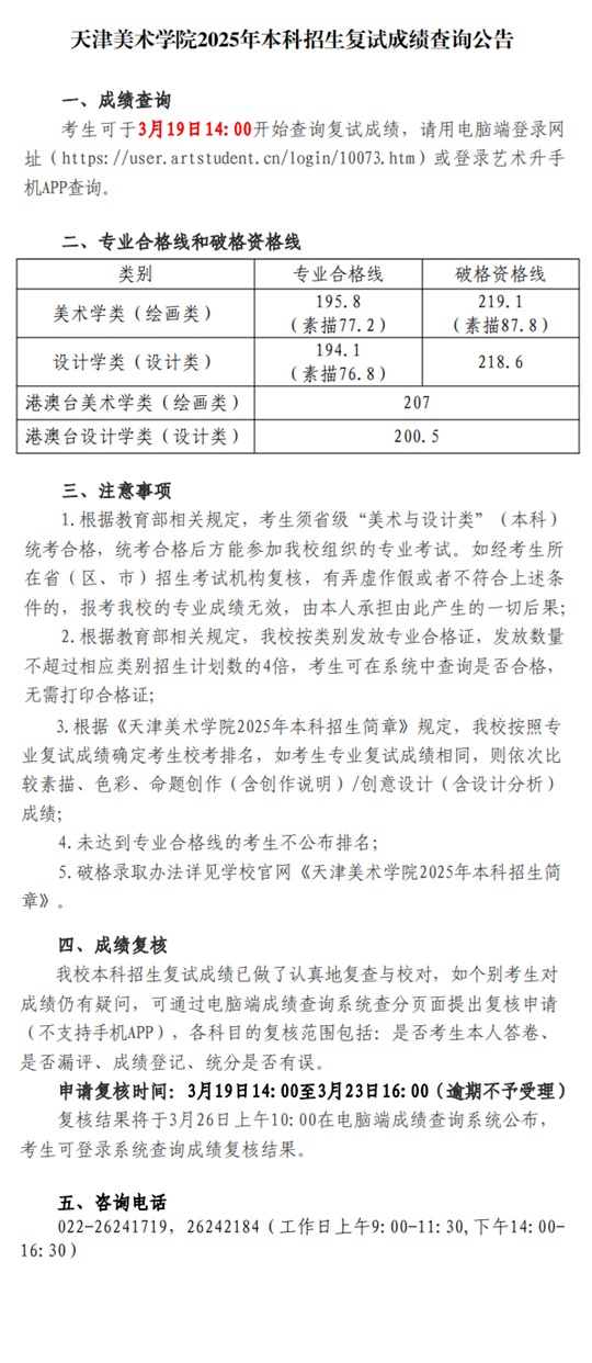 天津美術(shù)學(xué)院2025年本科招生復(fù)試成績(jī)查詢公告
