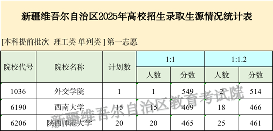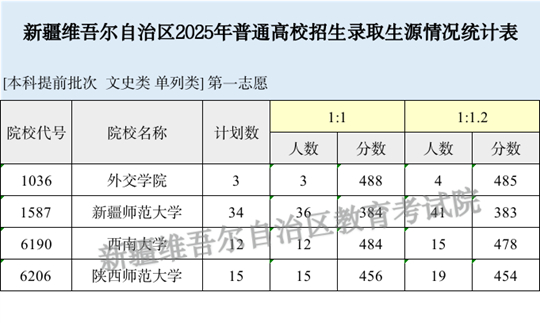 | 新疆維吾爾自治區(qū)2025年普通高校招生單列類本科提前批次投檔情況 |