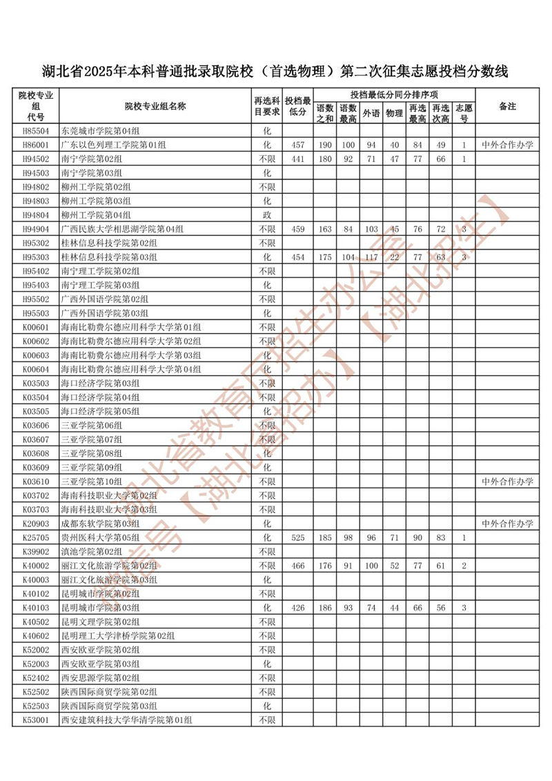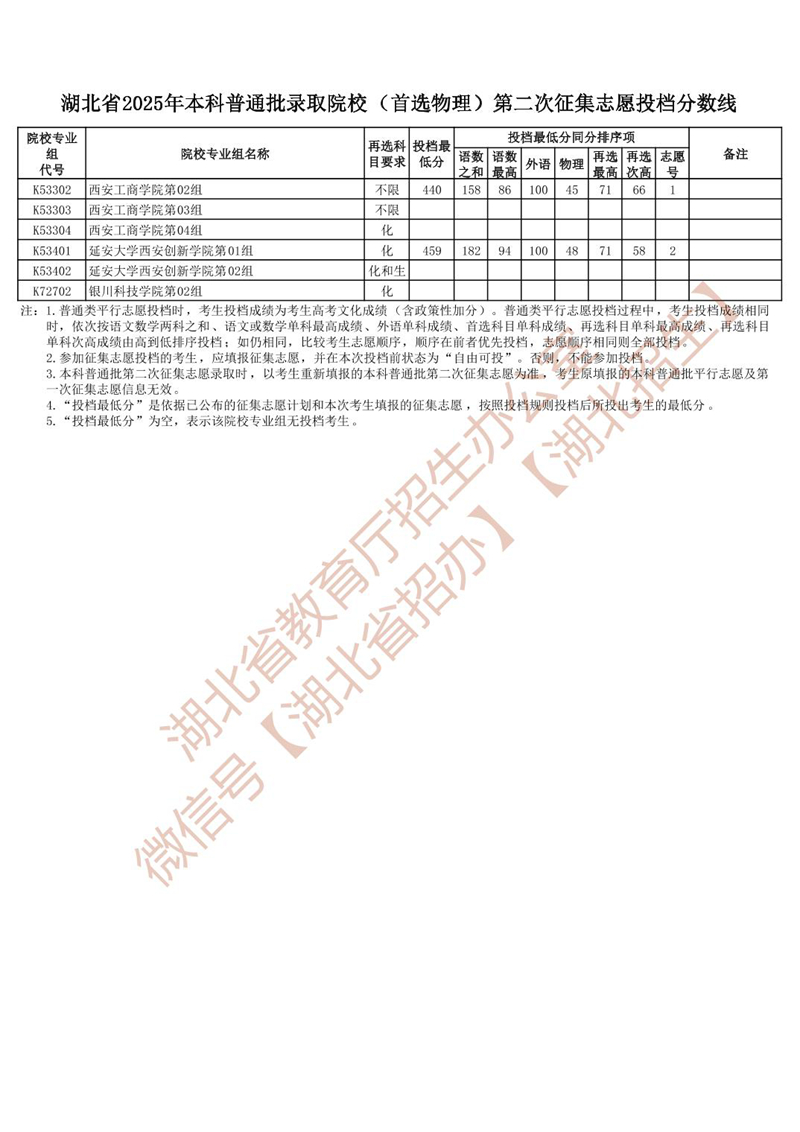 湖北省2025年本科普通批錄取院校 (首選物理)第二次征集志愿投檔分?jǐn)?shù)線