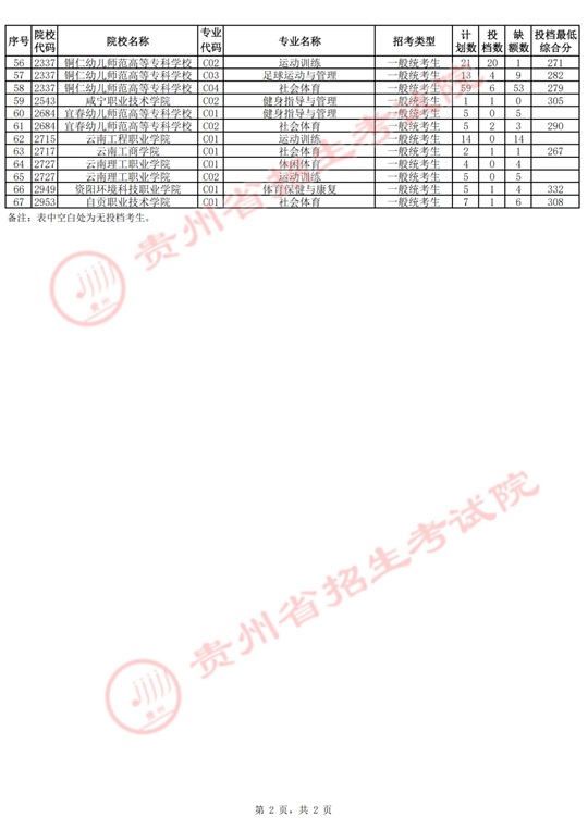貴州省2025年高考體育類高職(專科)批征集志愿投檔情況