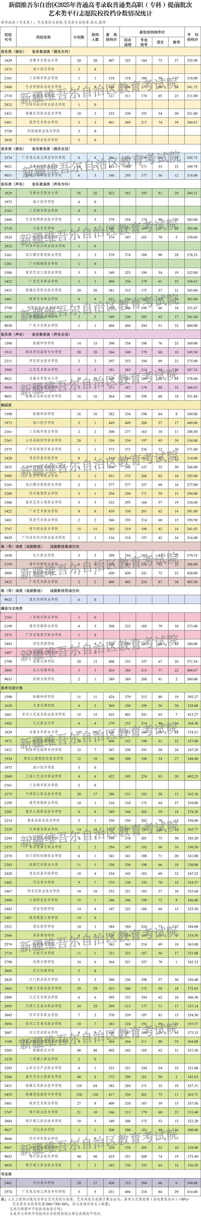 | 新疆維吾爾自治區(qū)2025年普通高校招生普通類高職(?疲┨崆芭嗡囆g(shù)類投檔情況 |