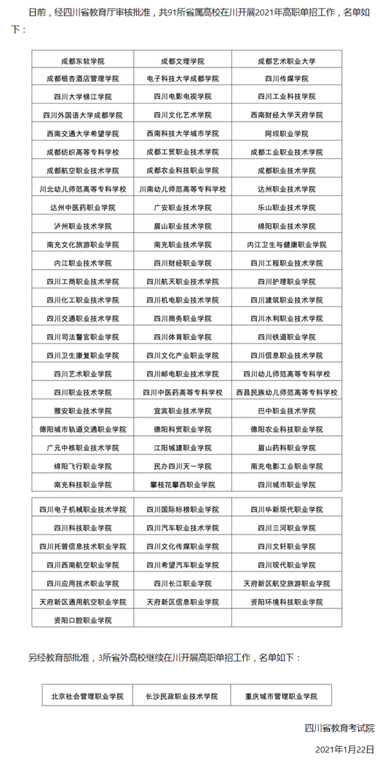 2021年高職單招在川招生高校名單公布