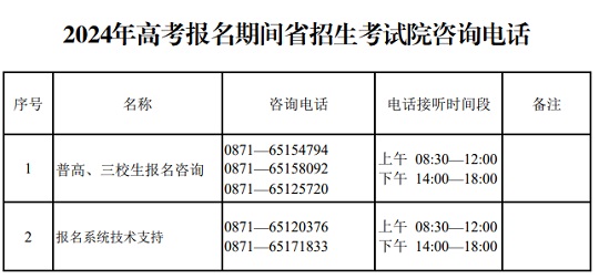 云南:2024年高考報名期間省招生考試院咨詢電話