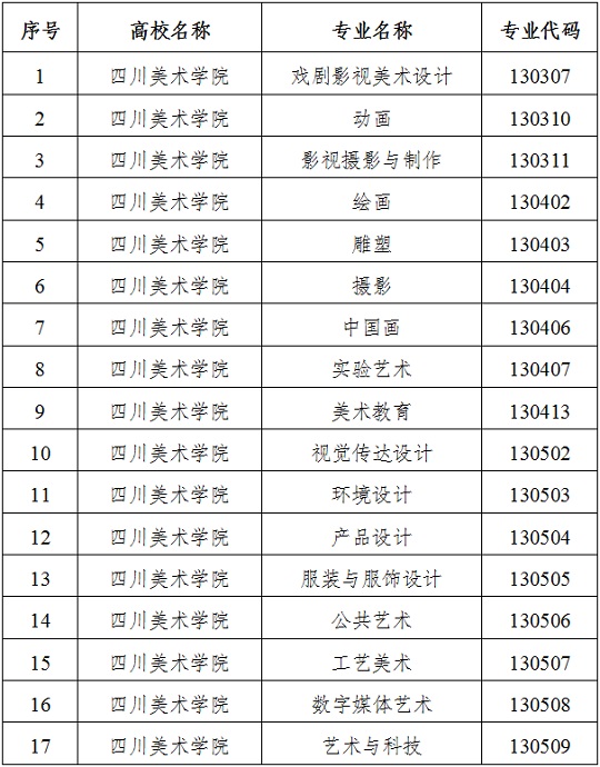 近日,市教委公布在渝高?山M織藝術(shù)類?嫉膶I(yè)名單,具體如下: