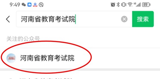 第一步:關(guān)注“河南省教育考試院”微信公眾號