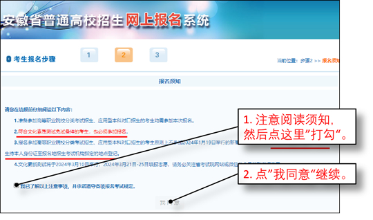 2.仔細閱讀報名須知,閱讀完畢后點擊左下角小方框“打勾”,然后點擊“我同意”進入報名頁面。