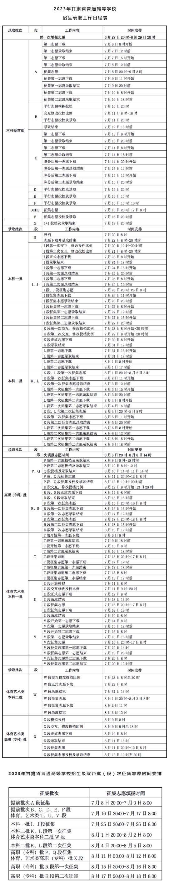 | 2023年甘肅省普通高校招生錄取批次及時間安排 |
