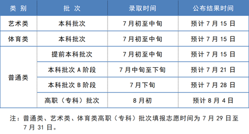 各批次錄取時(shí)間安排