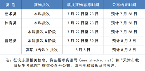 各批次征詢志愿錄取時(shí)間安排