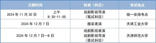 表(導(dǎo))演類市級(jí)統(tǒng)考分為戲劇影視表演、服裝表演、戲劇影視導(dǎo)演三個(gè)方向,考生須選擇其中一個(gè)方向參加考試?荚嚂r(shí)間及地點(diǎn)安排如下: