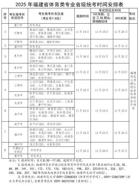 日前,省教育廳印發(fā)《關(guān)于做好2025年普通高校招生體育類(lèi)專(zhuān)業(yè)省級(jí)統(tǒng)一考試工作的通知》,明確2025年福建省普通高校招生體育類(lèi)專(zhuān)業(yè)省級(jí)統(tǒng)一考試(以下簡(jiǎn)稱(chēng)體育類(lèi)專(zhuān)業(yè)省級(jí)統(tǒng)考)將于2024年11月18日——11月27日進(jìn)行。