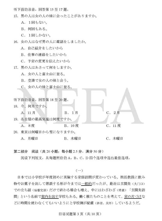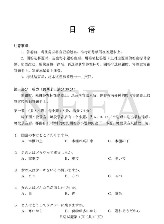 編者按:2024年,吉林、黑龍江、安徽、江西、廣西、貴州、甘肅等第四批高考綜合改革省份將要首考落地。為實(shí)現(xiàn)平穩(wěn)過渡,相關(guān)省份組織了適應(yīng)性演練。日語科適應(yīng)性測(cè)試題由教育部教育考試院依據(jù)高校人才選拔要求和《普通高中日語課程標(biāo)準(zhǔn)(2017年版2020年修訂)》命制,可供依據(jù)《普通高中日語課程標(biāo)準(zhǔn)(2017年版2020年修訂)》教學(xué)、使用高考全國(guó)卷的省份參考借鑒。北京、天津、浙江、山東等實(shí)施高考外語“一年兩考”的省份,2024年高考日語試卷結(jié)構(gòu)暫不調(diào)整,與2023年保持一致。