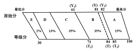 T表示考生的等級(jí)分?jǐn)?shù)。
