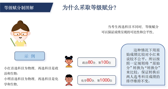語文、數(shù)學(xué)、外語按卷面原始分直接計(jì)入考生總成績;選擇性考試科目中,首選科目物理、歷史以卷面原始分直接計(jì)入考生總成績,再選科目化學(xué)、生物學(xué)、思想政治、地理以等級轉(zhuǎn)換分計(jì)入考生總成績。