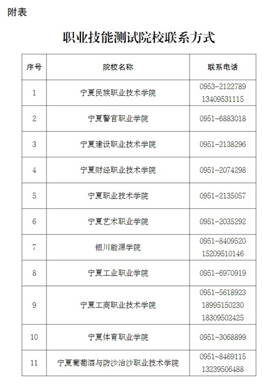 附表:職業(yè)技能測(cè)試院校聯(lián)系方式