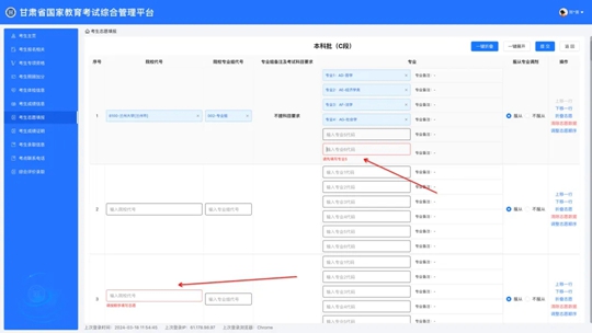 考生點(diǎn)擊需要編輯的志愿右側(cè)《編輯按鈕》,進(jìn)入填報(bào)編輯頁面,編輯頁面操作與志愿填報(bào)時(shí)操作一致。