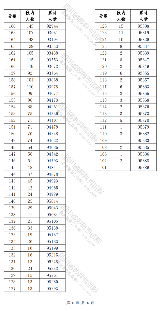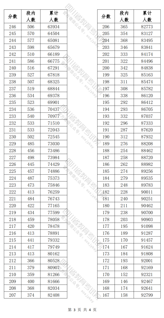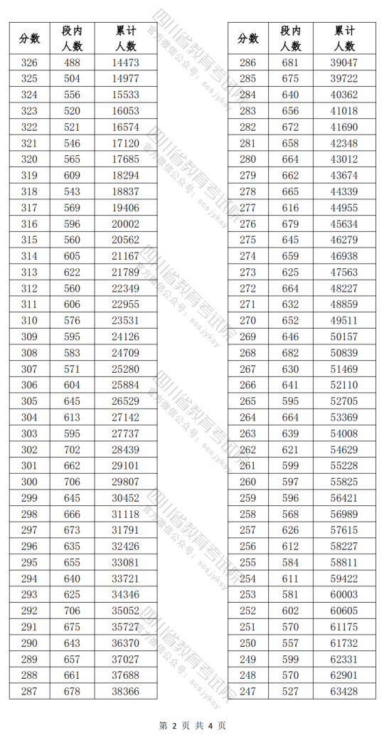 | 四川省2024年高職單招普高類考生成績分段統(tǒng)計表 |