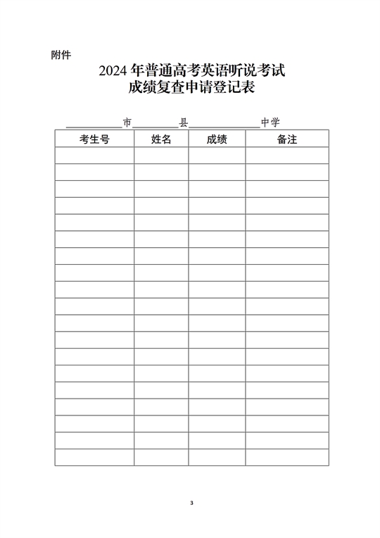 附件:2024年普通高考英語(yǔ)聽(tīng)說(shuō)考試成績(jī)復(fù)查申請(qǐng)登記表