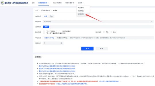 歷史數(shù)據(jù)查詢(該功能已上線)?刹樵2021年至2023年在渝招生高校各專業(yè)(分物理類、歷史類)的錄取人數(shù)、錄取分?jǐn)?shù)和位次等信息;