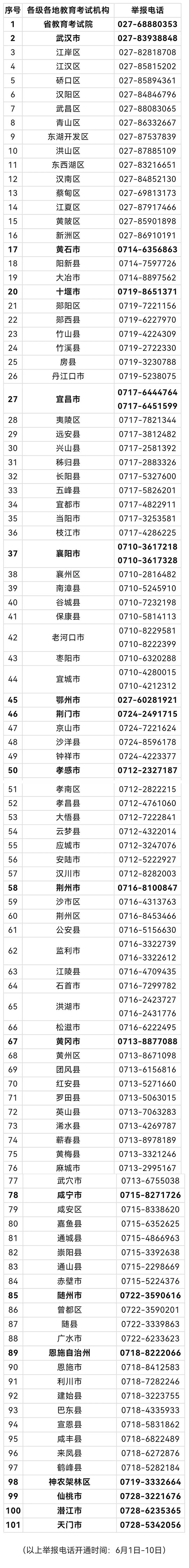 | 湖北省2024年普通高考舉報(bào)電話 |