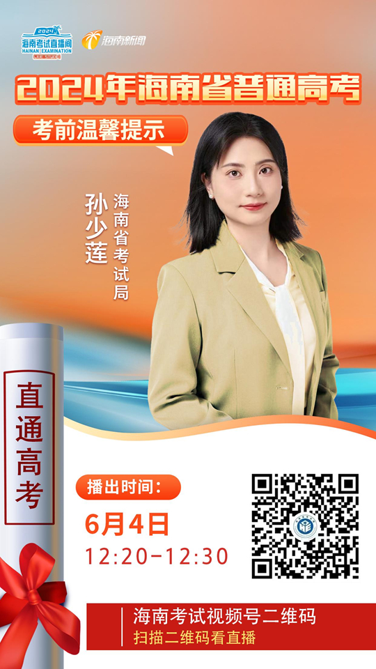 | 海南考試直播間開播:2024年海南省普通高考考前溫馨提示 |