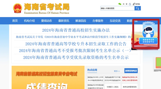 | 7×24小時(shí)服務(wù)全省考生,海南省考試局招生咨詢(xún)平臺(tái)上線了! |