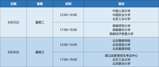 6月25日、26日,《北京考試報》社與北京教育考試院高招辦聯(lián)合舉辦大型公益活動——2024年高考高招志愿填報專場直播活動。歡迎考生和家長提前預(yù)約↓↓↓