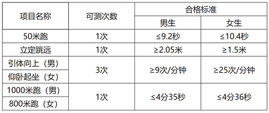 體能測評的項目和標(biāo)準(zhǔn),按照《國家學(xué)生體質(zhì)健康標(biāo)準(zhǔn)(2014年修訂)》有關(guān)規(guī)定執(zhí)行。