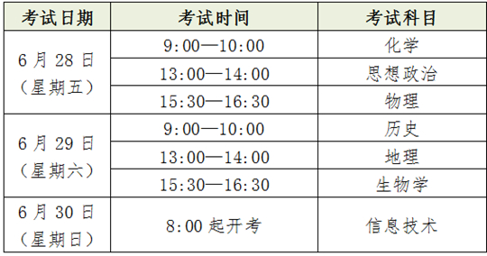 (2)6月28日下午思想政治科目考試,12:15考生開始入場,13:15禁止考生進入考點,13:30后考生可提前交卷離場。