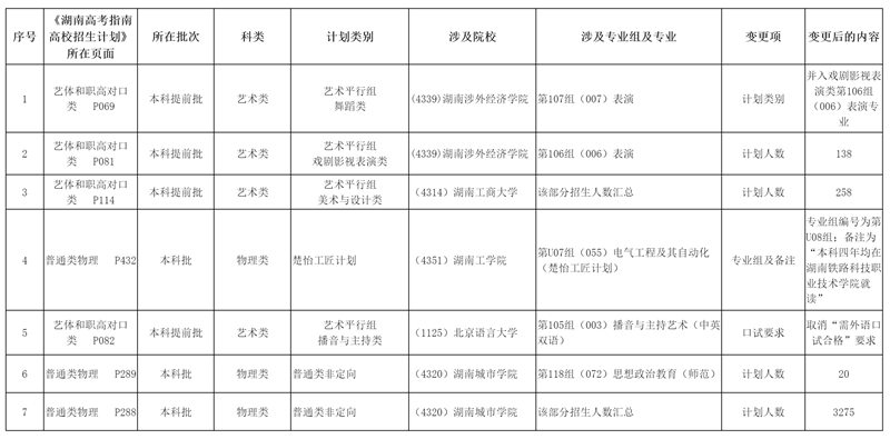 湖南:2024年普通高校招生計(jì)劃信息變更及補(bǔ)充說明