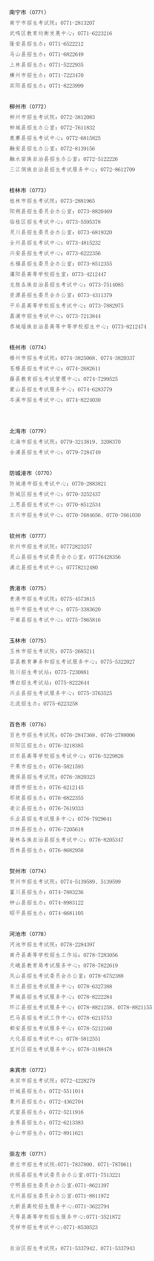 | 廣西2024年高考成績(jī)查詢、成績(jī)復(fù)核及志愿填報(bào)期間咨詢電話 |