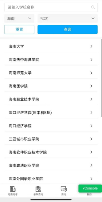 第四步:在海南高考頁面,點(diǎn)擊“錄取數(shù)據(jù)統(tǒng)計(jì)”按鈕,可查看歷年各院校錄取統(tǒng)計(jì)數(shù)據(jù)。