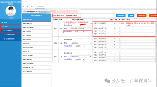 5.各批次填報流程相同,填報時必須選擇院校,選擇是否調劑,選擇專業(yè),并熟知“備注”欄中專業(yè)說明簡介。