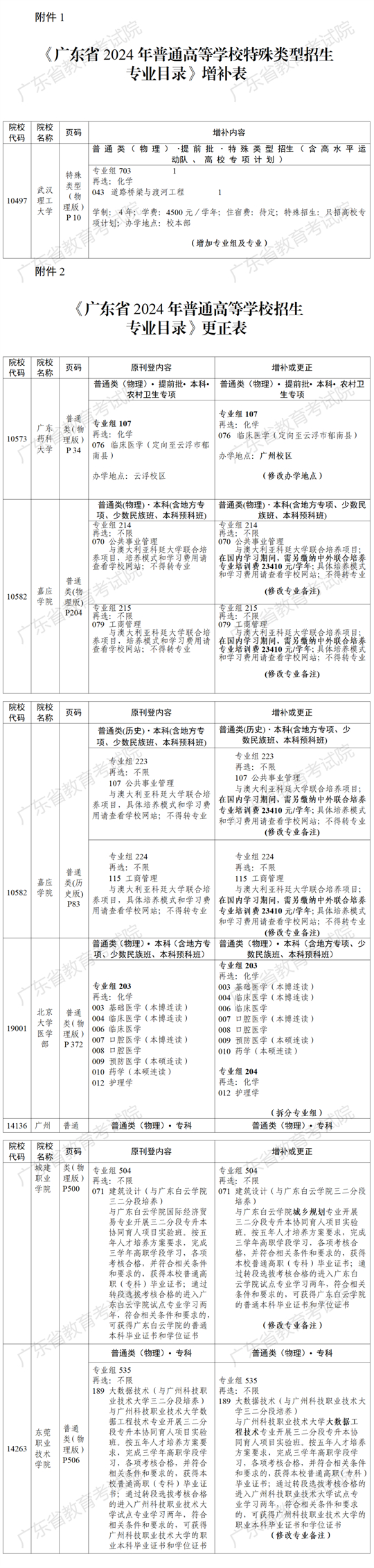 2.《廣東省2024年普通高等學(xué)校招生專業(yè)目錄》更正表