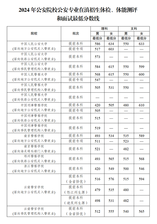附件:2024年公安院校公安專業(yè)在滇招生體檢、體能測評和面試分數(shù)線