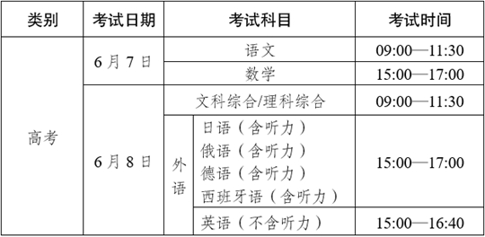 (一)高考各科目考試時(shí)間(北京時(shí)間)安排