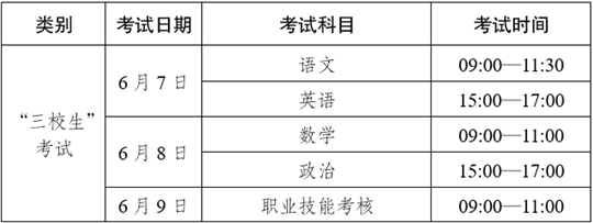(二)“三校生”考試各科目考試時(shí)間(北京時(shí)間)安排