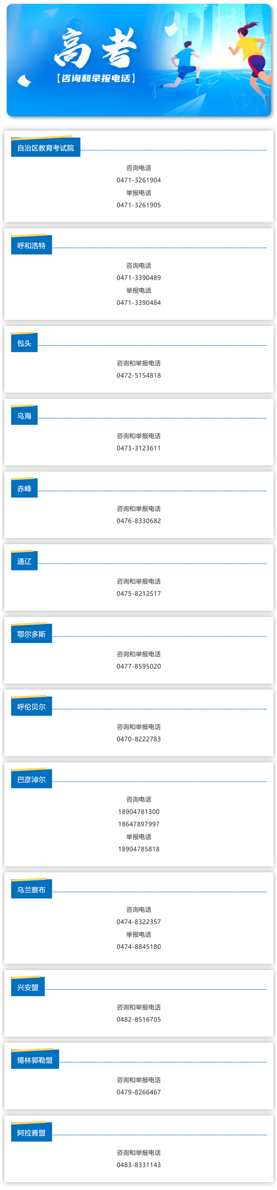 2024年內(nèi)蒙古自治區(qū)普通高校招生考試咨詢和舉報電話
