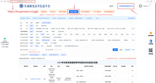 訪問甘肅省教育考試院官網(wǎng):https://www.ganseea.cn,點擊“綜合管理平臺”模塊,訪問“考生入口”登錄后點擊“志愿填報輔助平臺”進入“征集計劃查詢”模塊進行查詢;