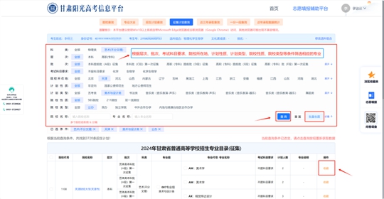 | 2024年甘肅省普通高校招生征集志愿(藝體類本科批H段第一次征集)填報操作指南 |