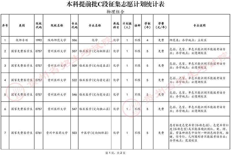 | 關于貴州省2024年普通高校招生本科提前批C段征集志愿的通告 |
