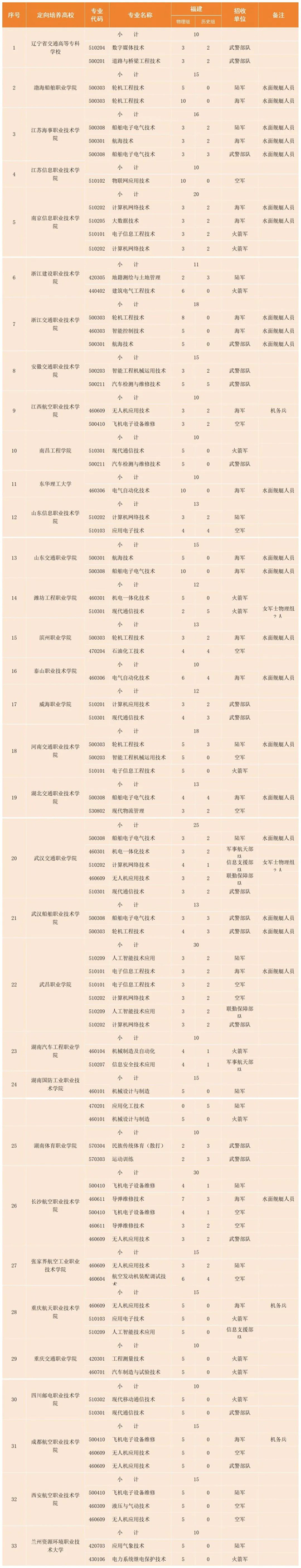 福建省2024年定向培養(yǎng)軍士招生計劃
