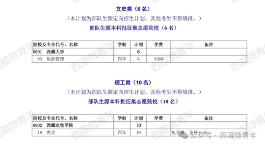 | 西藏:關于部隊生源本科批次未完成招生計劃征集志愿的公告 (第10號) |