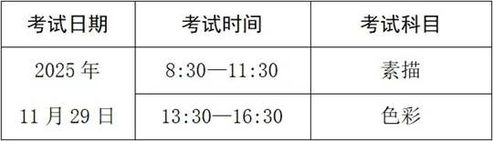 考生須帶身份證和準(zhǔn)考證參加所有項(xiàng)目考試。美術(shù)考試安排在每天上午7:30—9:00,遲到考生7:45后不得進(jìn)場(chǎng)考試,本項(xiàng)目作棄考處理;其他項(xiàng)目每天上午9:30開始,當(dāng)天所有項(xiàng)目必須在18:00前進(jìn)入候考區(qū)域,逾期作棄考處理。
