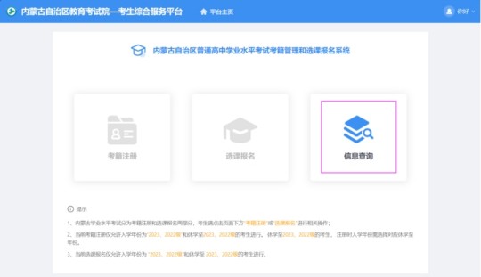 內(nèi)蒙古自治區(qū)普通高中學業(yè)水平考試考籍管理和選課報名系統(tǒng)點擊查看