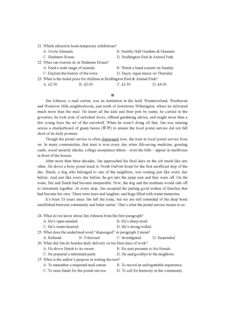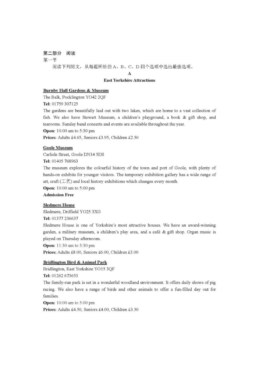 英語閱讀試題
