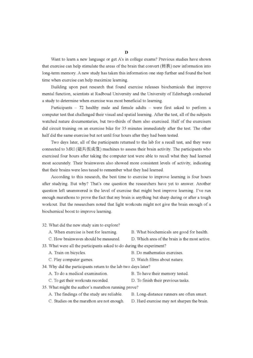 編者按:2025年,山西、河南、陜西、內(nèi)蒙古、四川、云南、寧夏、青海等第五批高考綜合改革省、自治區(qū)將要首考落地,為實現(xiàn)平穩(wěn)過渡,相關(guān)省區(qū)組織了適應(yīng)性演練。英語科適應(yīng)性測試題由教育部教育考試院命制,可供依據(jù)《普通高中英語課程標準(2017年版2020年修訂)》教學(xué)、使用高考全國卷的省區(qū)市參考。