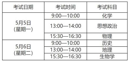 (1)5月5日上午化學(xué)科目考試,9:15起禁止進(jìn)入考點(diǎn),9:30后可提前交卷出場(chǎng)。