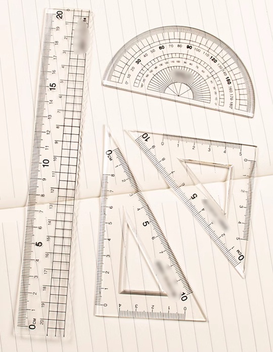 2. 仔細(xì)檢查《準(zhǔn)考證》《身份證》和2B鉛筆、0.5毫米黑色墨水簽字筆、直尺、圓規(guī)、三角板、無(wú)封套橡皮等必需的考試用品是否準(zhǔn)備妥當(dāng),將兩證和考試用品裝入透明的文件袋。需要特別提醒的是,現(xiàn)在市面上有的直尺、三角板上帶有公式、方根、對(duì)數(shù)、三角函數(shù)、曲線(xiàn)等,這樣的文具是不能夠帶入考場(chǎng)使用的,請(qǐng)大家務(wù)必注意,只能使用簡(jiǎn)單的帶有長(zhǎng)度刻度或角度刻度的直尺、三角板(如下圖所示)。